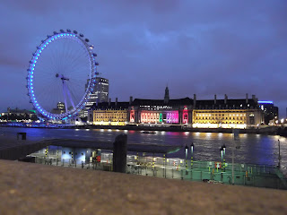 After dinner we walked around Covent Garden, then to Trafalger Square and then to Big Ben. We were in Trafalger Square for awhile, just because Samantha wanted a picture on one of the Lions...which was completely fine by me...just amusing to watch her try to get on them. In her defense though, they were huge. We walked to Big Ben to see it all lit up at night. It was worth it, it was very pretty. Of course I forgot my memory card again...I hate that!! I think I need like a second one or something so that I don't have that issue anymore. But anyways, yeah we went saw big ben and Westminster at night...then made our way over to see the south bank and the London Eye at night. It was all very pretty!